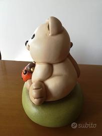 Carillon Thun. Orsetto seduto su un cuscino verde che abbraccia una coccinella. Nuovo, ancora in confezione originale.
