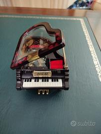 Carillon, portagioie, pianoforte vintage antico nero pianoforte a coda musica melodia, perfettamente funzionante, intatto, MEMORY music box