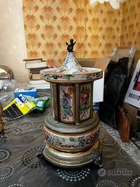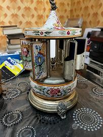 un carillon portasigarette vintage a forma di giostra, prodotto in Italia con un meccanismo musicale svizzero Reuge.