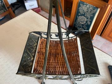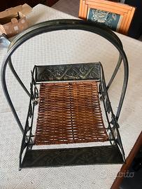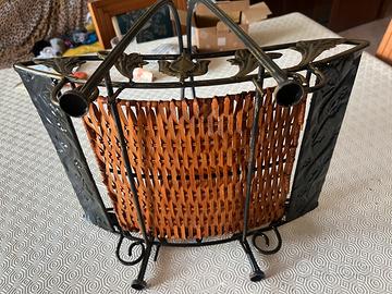 Porta giornali e oggetti ferro lavorato a mano con fondo in paglia di vienna