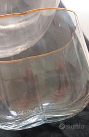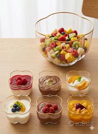Splendido ed elegante set da dessert firmato Carlo Moretti (Murano), appartenente alla prestigiosa collezione Quadrifoglio. Un pezzo di design che unisce l'eccellenza dell'artigianato veneziano a una forma iconica e senza tempo. Il set è realizzato in cristallo di Murano finissimo, caratterizzato da un raffinato bordo in oro zecchino applicato a mano, che ne esalta le linee sinuose a forma di quadrifoglio. Il set include: 1 Ciotola Grande: ideale per macedonie, composizioni di frutta o come centrotavola scenografico. 6 Coppette Monoporzione: perfette per dessert, gelati, mousse o macedonie individuali. Caratteristiche principali: Materiale: Cristallo di Murano originale. Dettagli: Bordo rifinito in oro. Stato: Ottime condizioni, conservato con massima cura. Autenticità: Design firmato Carlo Moretti, sinonimo di lusso e qualità Made in Italy. Un set unico, ideale per arricchire una tavola di classe o come pezzo da esposizione in una vetrina di pregio.