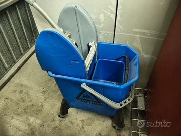 Vendo due carrelli per le pulizie. Sono un po' da pulire ma sono tenuti bene. Ho anche papere, scope e veline. Tutto a 70 euro.