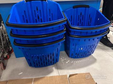 Carrello spesa colore blu manico estendibile nero. 25€ cadauno.