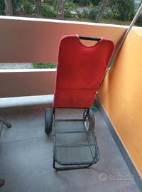 Vendo per inutilizzo due carrelli mare con ruote per tutti gli utilizzi trasporti. Uno trasformabile in comodo lettino con poggiatesta.