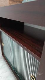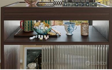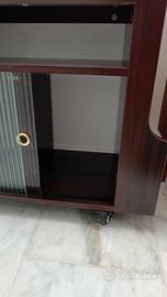 Piccolo carrellino (larghezza 60cm profondità 30cm e altezza 55cm) con ripiano in vetro e ante scorrevoli in vetro. Nuovo, in vendita per misurare errate