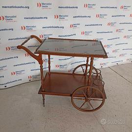 Carrellino Bar Vintage seconda met 900. Struttura in legno tornito. Piano