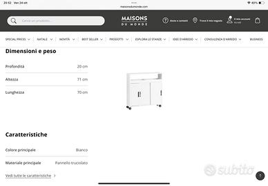 Si vende carrellino bianco salvaspazio in condizioni discrete, è necessario smontarlo per rimontarlo meglio a causa di sportelli scorrevoli andati fuori asse.