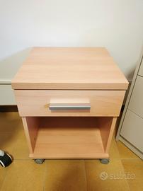Carrellino da scrivania con ruote, utilizzabile anche come comodino. Con un cassetto. In legno di faggio, come nuovo. Astenersi perditempo.