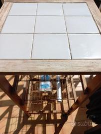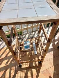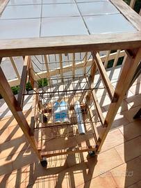 Carrellino frutta in legno, piano con mattonelle