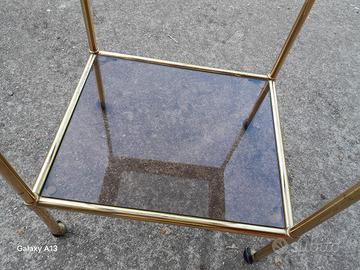 vendo un carrello portaliquori/ portavivande con vetri fume' originale anni sessanta in buone condizioni. ruotine perfettamente funzionanti .misura cm 42x37 .altezza cm 68.