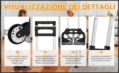 La piastra di appoggio pieghevole rende il carrello facile da trasportare e riporre anche in spazi ridotti.