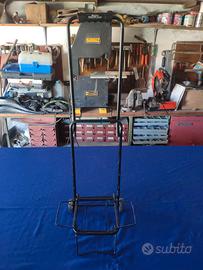 Vendo praticissimo carrellino multiuso pieghevole per trasporto merci dotato di due ruote e comoda maniglia. Misura base di appoggio 330x200 mm. Altezza 850 mm.