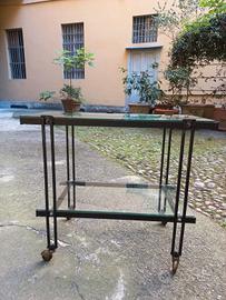 Carrellino porta TV, semplice e leggero su ruote in metallo e vetro. Le ruote scorrono ancora, possono essere odiate per un funzionamento più fluido. Versatile, può essere usato per altri scopi. Le dimensioni sono 33×72×62.