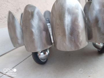 porta vaso con rotelle costruito tutto a mano in acciaio e acciaio inox diametro esterno 35 cm altezza 15 cm porta un vaso fino a 29 cm di diametro con una portata di 50kg