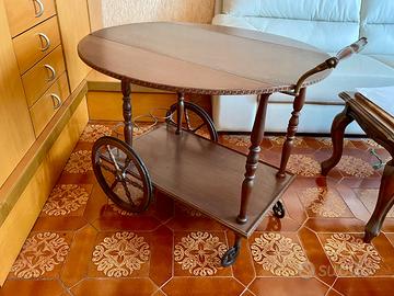 Vendo carrellino portavivande in legno in ottime condizioni, ideale per servire cibi e bevande o come piano d'appoggio aggiuntivo in cucina, soggiorno o sala da pranzo.