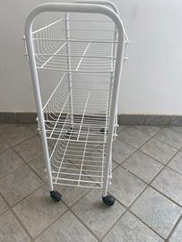 Vendo carrellino porta oggetti in metallo bianco con ruote, utile per bagno o cucina
