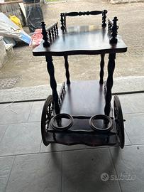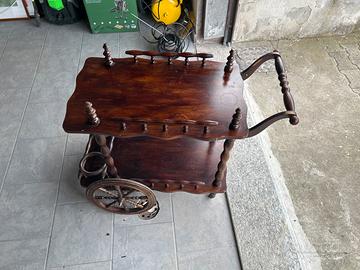 Qualche segni di usura ma nulla che un buon trattamento non posso recuperare. Carreloino con ruote in legno trasportabile.