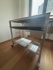 Carrello in alluminio modello garage di Ycami con scrivania per pc, ruote, ripiano e porta oggetti