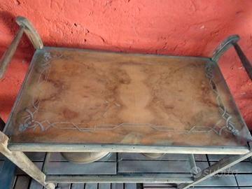 carrello in legno con vetro lavorato misura h 68-80 cm lungo 78 cm largo 40 cm