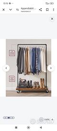 Appendiabiti per Carichi Pesanti, Barra di Sospensione Regge Fino a 90 kg, Appendiabiti a Tubi Mobile in Stile Industriale con Ripiano, Rotelle Bloccabili, per Lavanderia, Nero