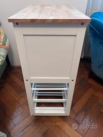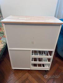 Carrello con ripiano in legno e vanonporta bottiglie e sportelli . Mai usato, perfetto Dimensioni 67x38x86cm