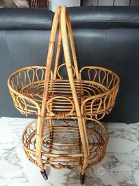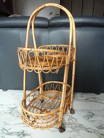 carrello bamboo rattan porta piante riviste bibite