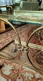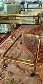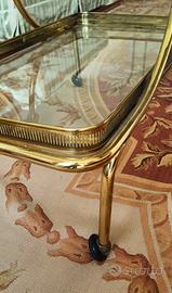 Bar cart in ottone e vetro. Misure: lunghezza cm. 82 larghezza cm. 40 altezza piano cm. 60 con maniglie cm. 65. Carrello bar con 2 piani in vetro. In perfette condizioni. Ritiro in piazza de Angeli Milano.