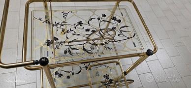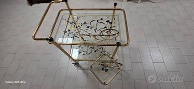 carrello d'epoca ottonato con vetri