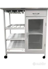 Carrello da Cucina,Bianco,Piano in Acciaio Inossidabile,76x48x88cm