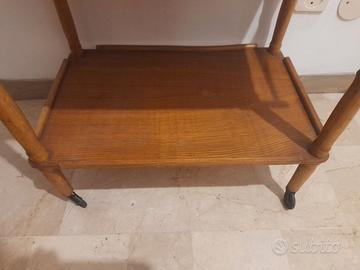 Vendo carrello portavivande/bar vintage in legno tonalità chiara con un design che richiama lo stile Mid-Century.
