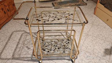 Carrello bar ottonato con vetri. Il carrello con 4 ruote girevoli. L'ottone va lucidato, i vetri in ottime condizioni