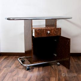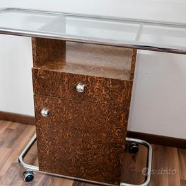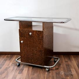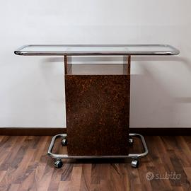 Carrello da bar in radica e acciaio cromato con piano in vetro Come nuovo