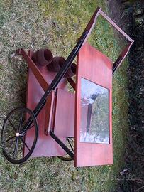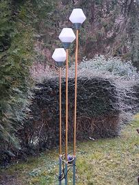 Carrello Bar. L'oggetto mostrato è uncarrello bar vintage(o carrellino portavivande) di design italiano, risalente aglianni '50 o '60. Questo pezzo è un classico del designMid-Century Moderne viene spesso attribuito a importanti designer dell'epoca o descritto come realizzato nel loro stile. Caratteristiche Principali Materiali:È realizzato inlegno di teak(o faggio tinto) con una struttura inmetallo nero(o ottone) e un inserto invetrosul ripiano superiore. Design:Presenta un'estetica scandinava con linee pulite e funzionali. Un elemento distintivo è la presenza ditre portabottiglie cilindriciin legno integrati nel ripiano inferiore. Attribuzioni Comuni:Sebbene esistano varianti, questo modello è spesso associato o attribuito a designer comeCesare LaccaoOsvaldo Borsani(stile Tecno). LAMPADA. Questa è una lampada da terra vintage a tre luci risalente agli anni '70, spesso associata allo stile Space Age. Materiali:Presenta una struttura in metallo cromato e diffusori, in vetro opalino materiali tipici dell'epoca. Design:Caratterizzata da tre steli di altezze diverse che terminano con i punti luce. Stile:Il design sinuoso e futuristico è tipico dell'illuminazione italiana degli anni '70. NON SPEDISCO, SOLO RITIRO A TORINO ,COS' SI HA MODO DI OSSERVARE QUELLO CHE SI ACQUISTO. SONO UN COLLEZZIONISTA PRIVATO , NON SONO UN COMMERCIANTE.