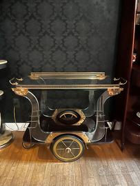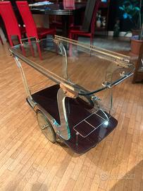 Carrello bar vintage anni 70 in vetro e ottone