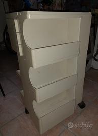 Carrello contenitore in plastica disegnato negli anni 70 da joe colombo È in buone condizioni a parte qualche graffio e ingiallimento di tutto un lato, come si vede dalle foto