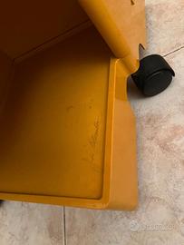 L'esemplare è nella sua rara colorazione gialla, è dotato di tre cassetti apribili e presenta nel ripiano inferiore la firma del designer. L'oggetto è in ottime condizioni di conservazione,