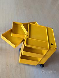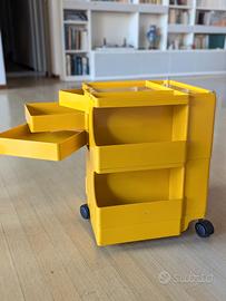 Comodino- Carrello Boby giallo vintage di Joe Colombo, anni 70, funzionante ma con qualche adesivo e segni di usura