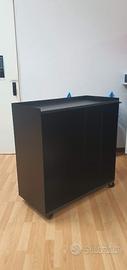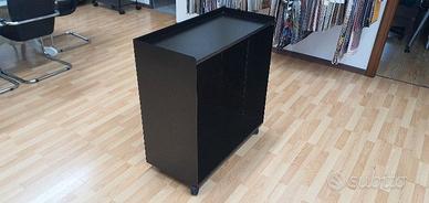Carrello in lamiera verniciata a polvere col. nero, mis. L 900 P 430 H 930 mm, n° 4 ruote, n° 1 tubo cromato appendi tirelle tessuto o grucce, n° 1 maniglia, si potrebbe avere anche con adesivo pre-spaziato col. bianco ( invia il tuo logo ). Ideale per ottimizzare spazi ed avere tutto in ordine nel tuo ufficio o show room.