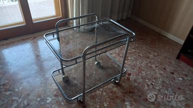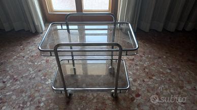 Bellissimo carrello a due ripiani in vetro, con ruote. Ideale come carrello tv, poggia cornici, bomboniere. Non spedisco, ritiro a mano così potete verificare personalmente lo stato del carrello.