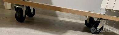 Bellissimo carrellino con ruote porta oggetti e porta pesi ingombranti (con portata da 100 kg). Struttura solida e robusta in puro legno di faggio con ruote in acciaio inox.