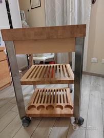 Carrello cucina della LEGNOART, praticamente quasi nuovo in legno massello e metallo con rotelle