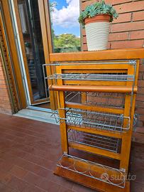 Vendo per inutilizzo , bel carrello cucina in massello completo di 4 cestelli , un cassetto , porta rotolo , porta spezie e porta bottiglie . Piccola ammaccatura sul bordo cassetto come da foto ma non visibile a cassetto chiuso . Molto bello e funzionale