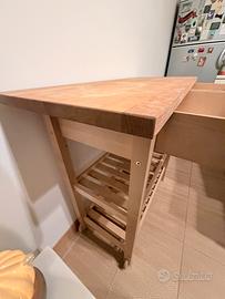 Vendo carrello da cucina IKEA FORHÖJA originale. Struttura in legno massello di betulla, piano di lavoro spesso, 2 cassetti e 2 ripiani inferiori. Molto stabile e robusto, ideale come isola da cucina o piano di appoggio.