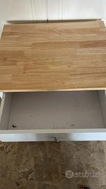 Carrello da cucina con un design moderno e funzionale. L’interno del cassetto presenta sgraffi dovuti all’utilizzo - Piano in legno. - Ante con pannelli in vetro. - Maniglie argentate. Altezza cm 85 Lunghezza cm 68 Profondità cm 48 RITIRO A MANO