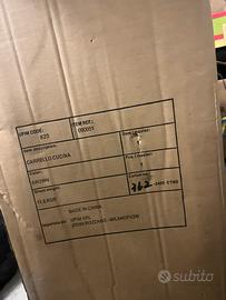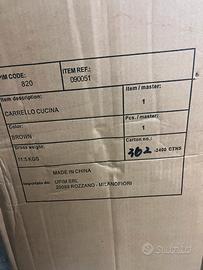 Carrello cucina in legno, 3 ripiani, 2 cassetti, con rotelle. Misure 85x85x37 Il prodotto e’ ancora perfettamente imballato, mai usato.