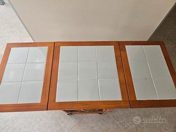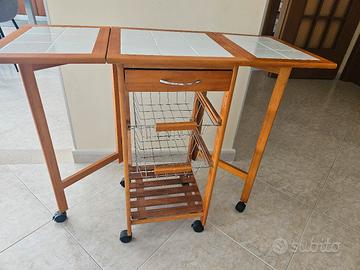 Vendo carrello cucina butterfly in pino e piastrelle in ceramica,con due cestelli e un cassettino,in ottime condizioni.