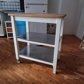 Carrello cucina Ikea dim: L0.79xP0.51xH0.90 piano sup. tagliere da trattare ad olio; ripiani in acciao leggermente graffiati.