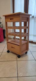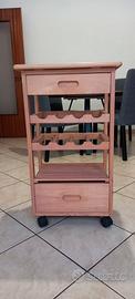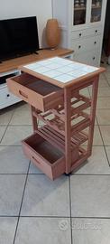Carrello cucina porta bottiglie vino con due cassetti e ripiano tagliere in ceramica. In legno e tenuto perfettamente