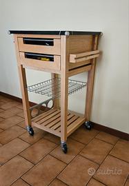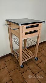Vendo, zona Ospedale Civile, carrello cucina portavivande. Il mobiletto è munito di rotelle 2 cassetti, 2 ripiani e portabottiglie. Alcune parti metalliche leggermente rovinate. Altezza 89 cm Larghezza 50 cm Profondità 50 cm Non effettuo spedizioni, da ritirare in loco