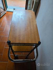 Vendo bellissimo e robusto carrello da cucina professionale della linea Viceversa Utility System, un classico del design funzionale. Perfetto come isola da cucina, piano d’appoggio extra o mobile bar grazie al suo stile industrial elegante. Caratteristiche principali: Materiali di alta qualità: Struttura in solido acciaio cromato e ripiani in legno massiccio. Praticità: Dotato di 4 ruote piroettanti (per spostarlo facilmente) e una comoda maniglia laterale cromata. Versatilità: Include un piano superiore in legno, un ripiano intermedio e una griglia inferiore (ottima come portabottiglie o per la frutta). Dimensioni: Altezza: 94 cm Lunghezza: 74 cm Larghezza: 33 cm Il mobile è in buone condizioni generali, con la normale patina del tempo che ne attesta l'originalità. Ideale per chi cerca un pezzo d'arredamento durevole e di marca, non paragonabile ai prodotti economici da grande distribuzione.